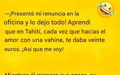 Un hombre llega a casa visiblemente muy emocionado. Le explica a su esposa: «¡He renunciado a mi trabajo y lo…