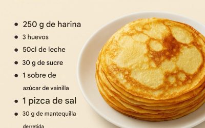 Deliciosos panqueques finos y esponjosos, sencillos y tradicionales, perfectos para desayunar o merendar.Ingredientes:250 g de harina,3 huevos ,50 cl de…