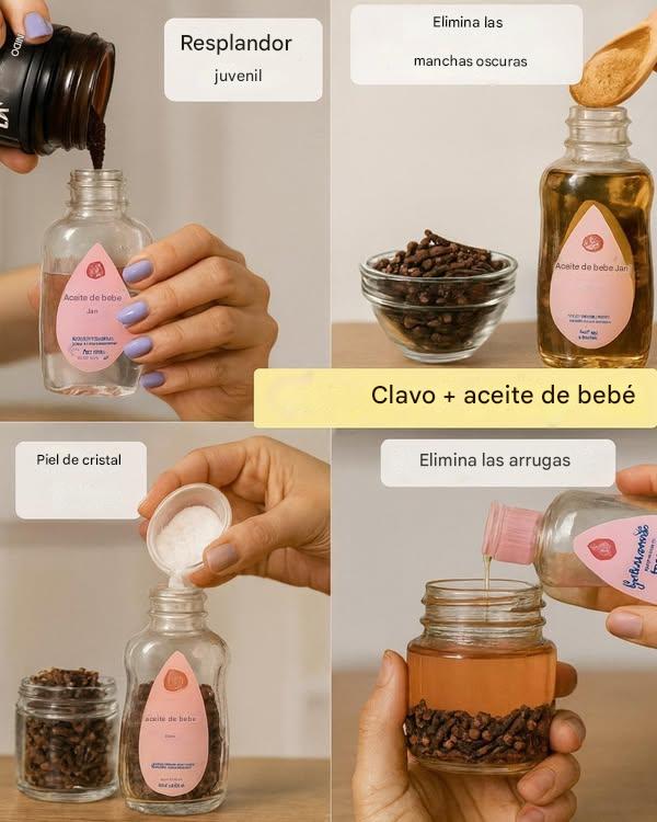 La combinación de clavo y aceite de bebé —un hidratante suave a base de aceite mineral— crea una combinación interesante. El aceite mineral actúa como oclusivo, creando una barrera que retiene la humedad, según reseñas de fuentes como Verywell Health. Puede ser especialmente útil para la piel seca, ayudándola a volverse más suave y flexible.
