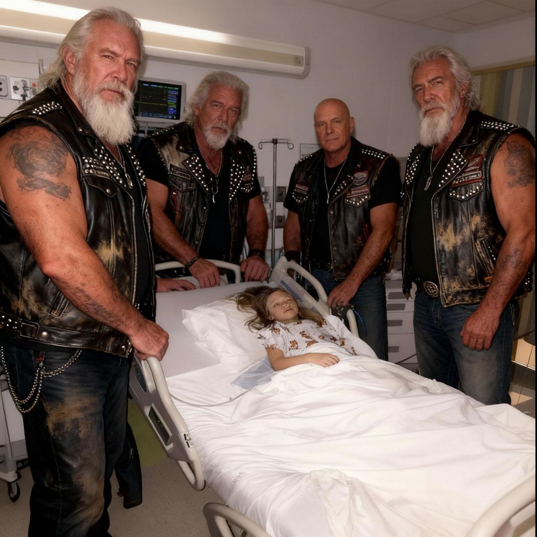Eran cuatro, figuras imponentes, vestidos de cuero y botas gruesas, avanzando por un pasillo de hospital habitualmente silencioso. A su paso, las conversaciones se silenciaban y las cabezas se volvían hacia arriba. Sin embargo, tras su imponente apariencia, no había amenaza ni provocación, sino una intención profundamente humana. Ese día, estos motociclistas no habían venido a hacer ruido, sino a ofrecer algo mucho más valioso: su presencia, su calidez, una promesa de solidaridad humana.