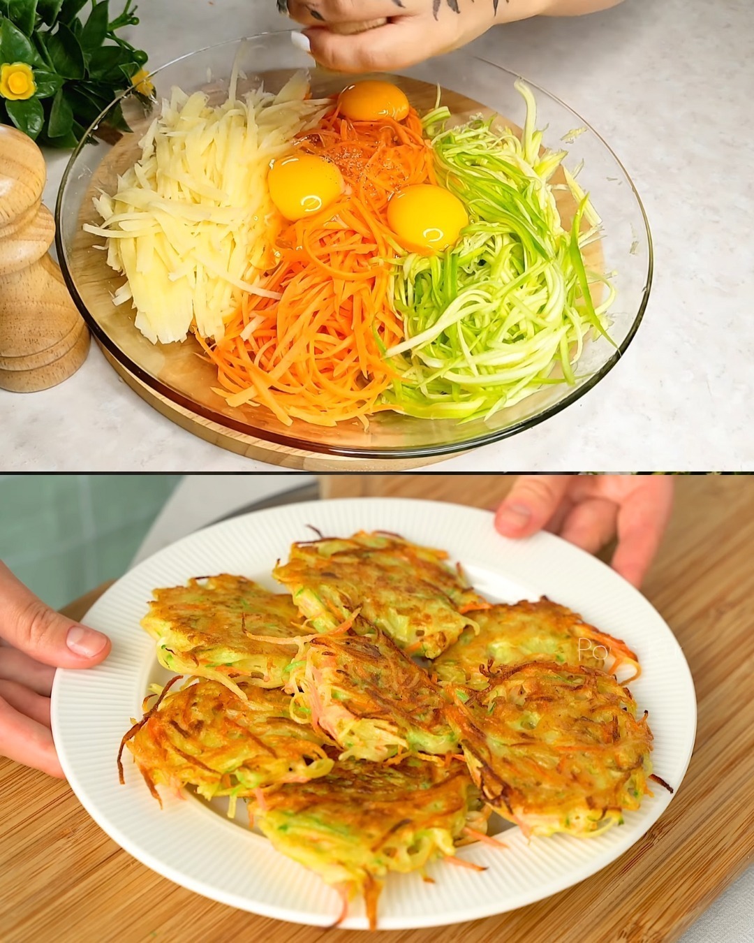 ¡Descubre una receta rápida y fácil de deliciosos panqueques de verduras! Estos panqueques están hechos con una mezcla de zanahorias, papas y calabacín, lo que los convierte en una opción saludable y deliciosa para cualquier comida. Perfectos para el desayuno, el almuerzo o como refrigerio, estos panqueques se convertirán rápidamente en un básico de tu dieta. ¡Comencemos!