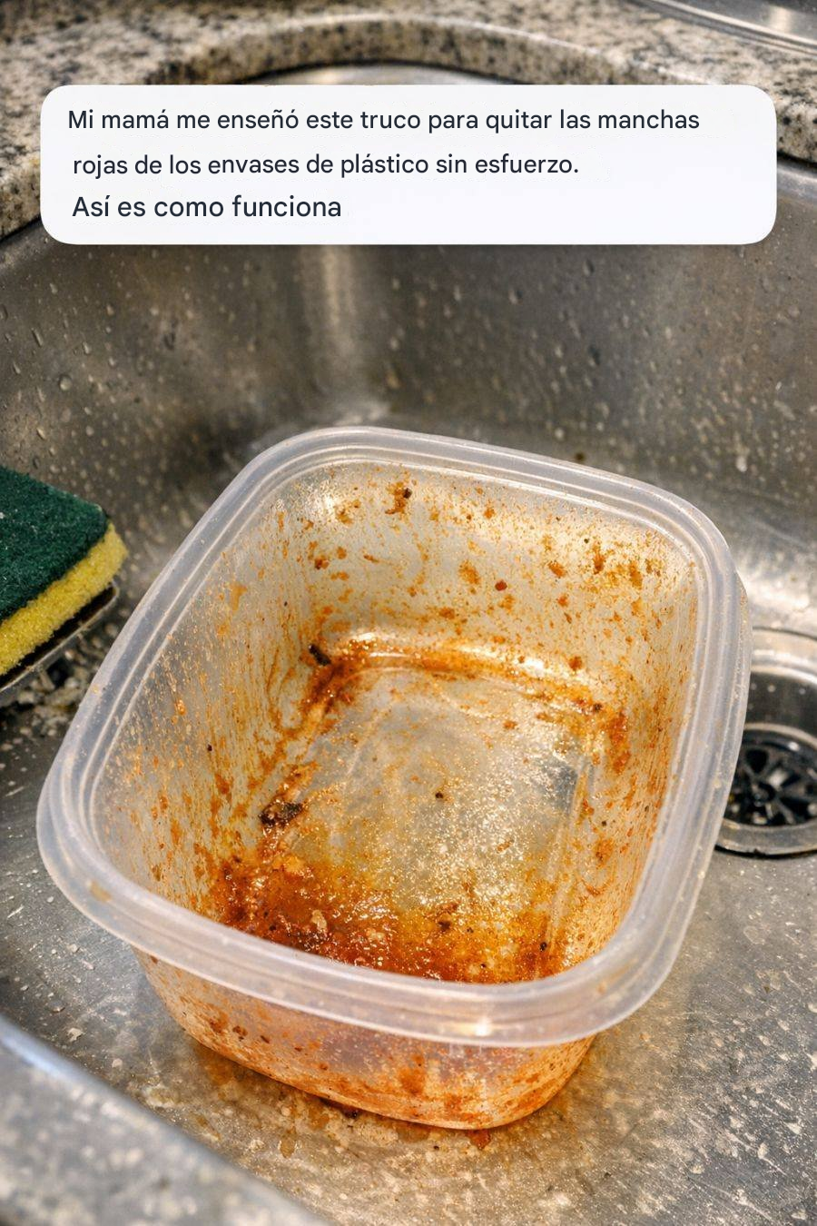 Todos hemos experimentado la frustración de abrir los armarios de la cocina y encontrar recipientes de plástico manchados con manchas rojas persistentes de la salsa para pasta de anoche o del curry de ayer. Estas manchas no solo hacen que nuestros recipientes se vean feos, sino que también pueden ser increíblemente difíciles de quitar, lo que nos lleva a muchos a tirarlos y empezar de cero. Por suerte, no hay necesidad de llegar a tales extremos, ya que mi madre me enseñó un truco sencillo que restaura fácilmente tus recipientes a su estado original.
