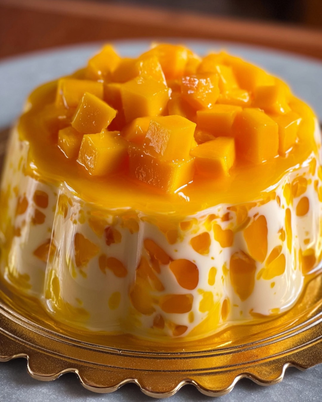Postre de Gelatina con Queso Crema y Mango ¡Suave, Dulce y Perfecto para Sorprender!Este postre frío combina cubitos de gelatina, trozos de mango fresco y una mezcla de crema con queso. ¡Sin horno y con un espectacular sabor tropical!